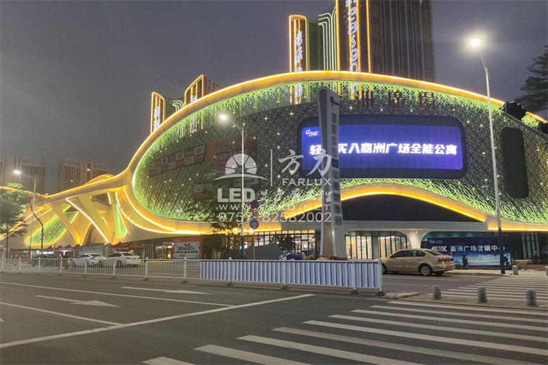 【项目简介】:乐平嘉洲广场是佛山嘉洲集团继南海嘉洲广场、里水嘉洲广场后的第三个大型购物中心项目。该项目位于乐平镇乐平大道,用地面积4.08万㎡,总建筑面积11.5万㎡,由5.7万㎡的体验式购物中心、2.4万㎡高端公寓、3.4万㎡大型地下停车场组成,总投资8亿元。商业中心业态分布,项目设计本身也颇有心思,包括:1、塔楼、裙楼全覆盖的LED泛光照明;2、广场主入口的LED互动投影;3、幕墙“双狮眼”LED透明显示屏。